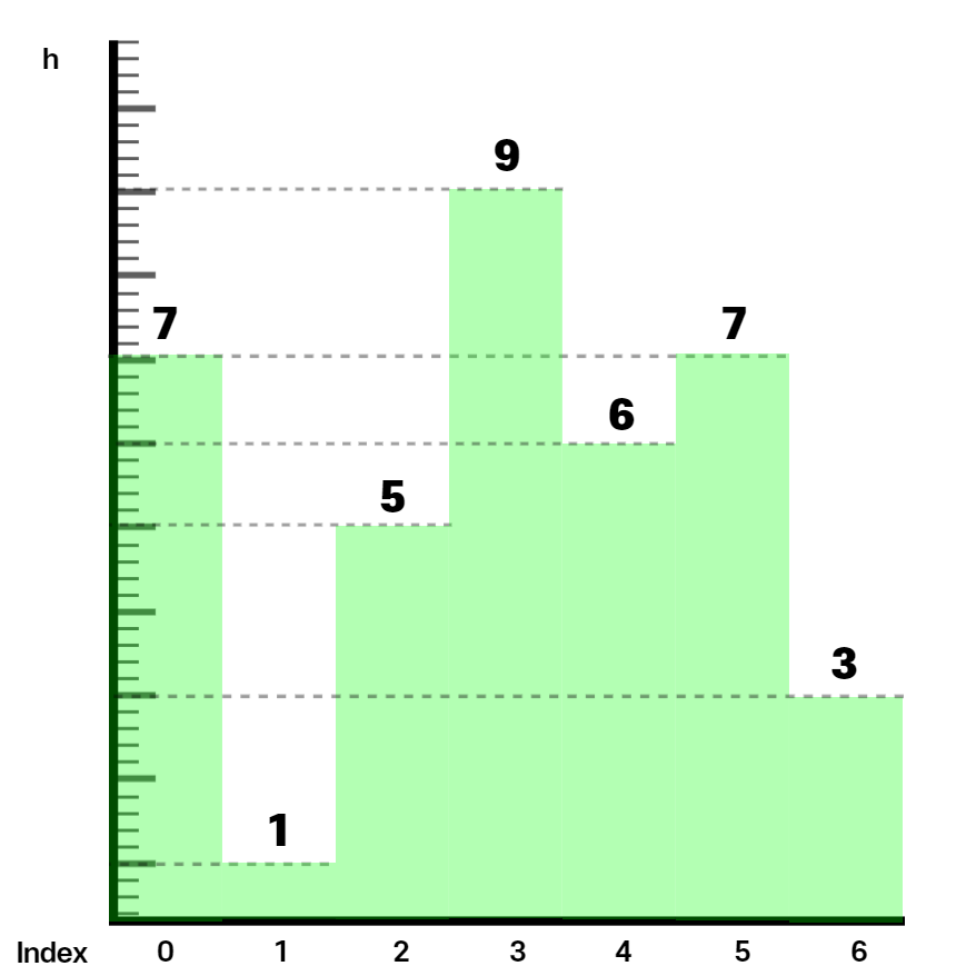 - 사각형의 왼쪽 끝과 오른쪽 끝은 i번 판자보다 낮은 판자들로 막혀있다.